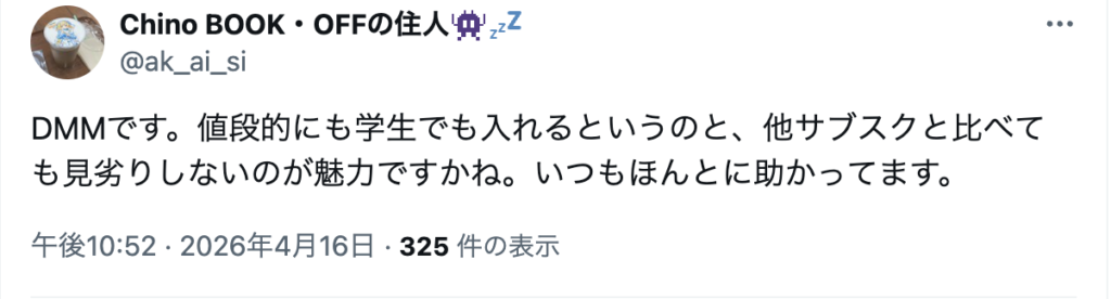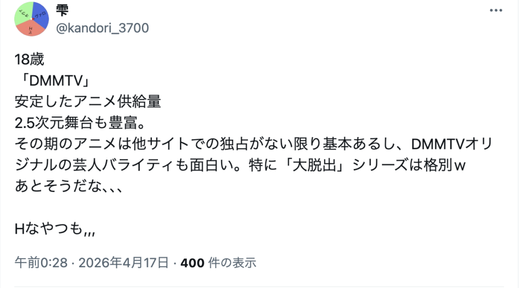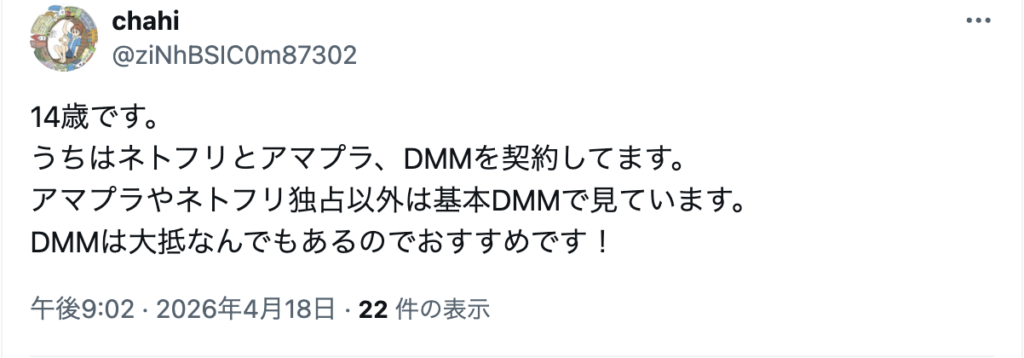 以下はネット上で見つけた、DMM TVを勧める人の意見です。