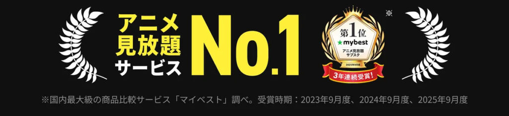 また、マイベストが選ぶアニメ見放題動画サービスにおいて、「3年連続 No.1」を受賞しており、DMM TVも総合評価はとても高いと言えます。(DMM TV公式サイト)