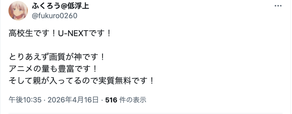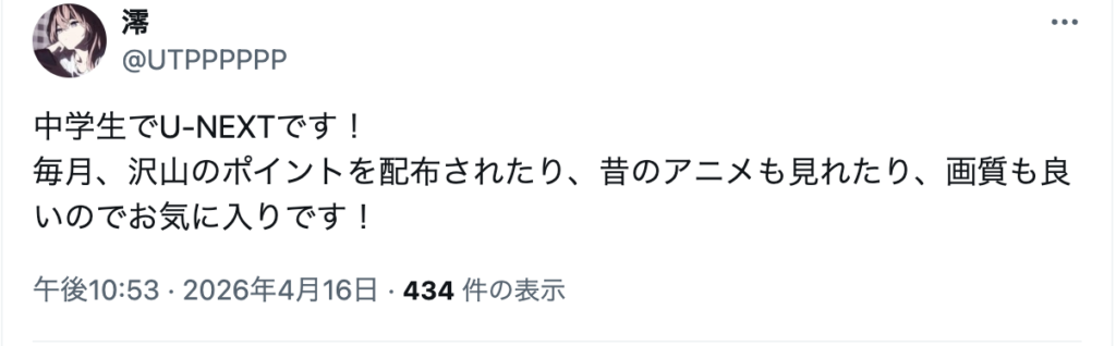 以下はネット上で見つけた、U-NEXTを勧める人の意見です。