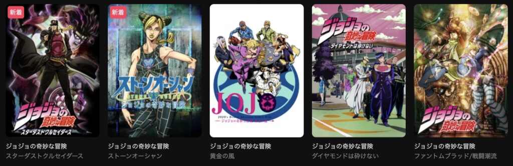 ジョジョはここで述べた作品のほかに、本編アニメもあります。
